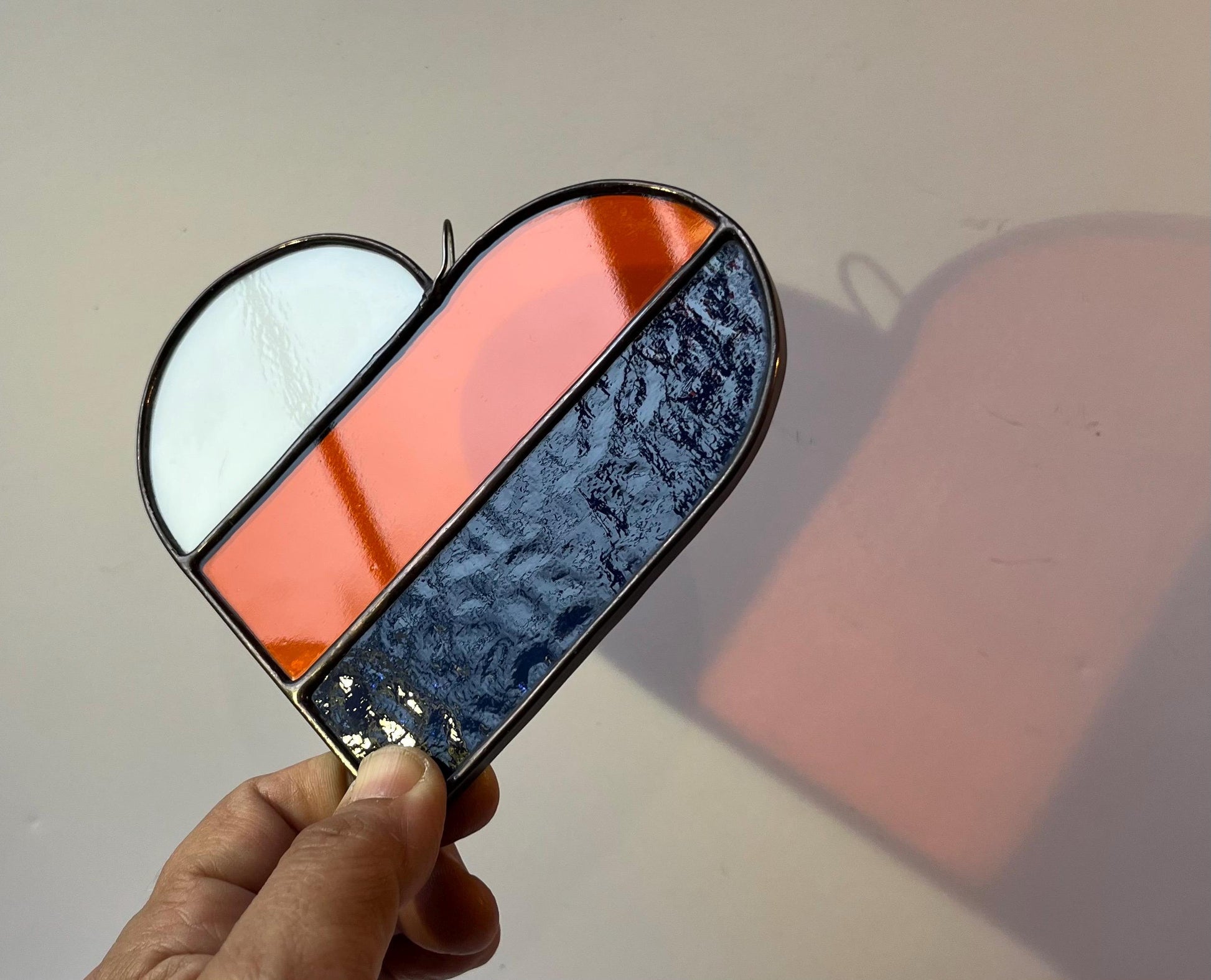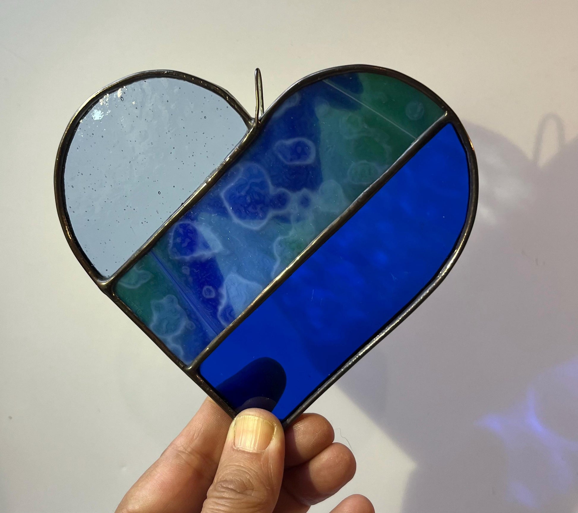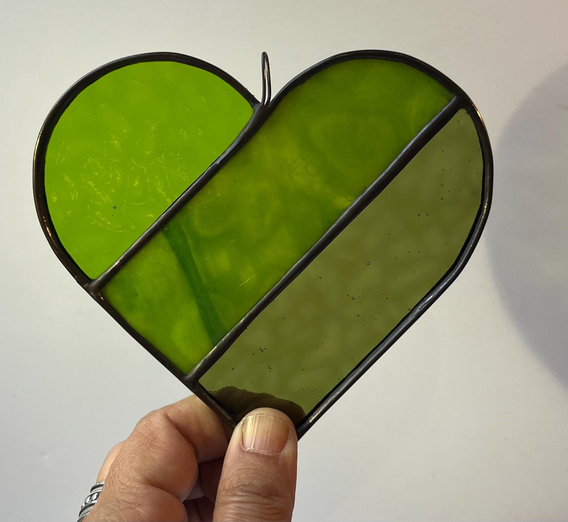 This is a 5” stained glass heart! Finished with black patina and lead came edging. I ❤️these SO much!!!