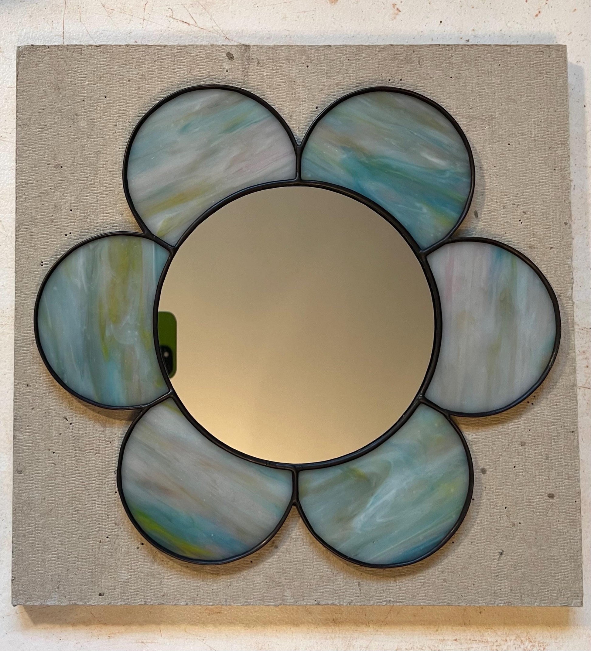 Stained Glass Mirror- Gazing Daisy- Pale Blue