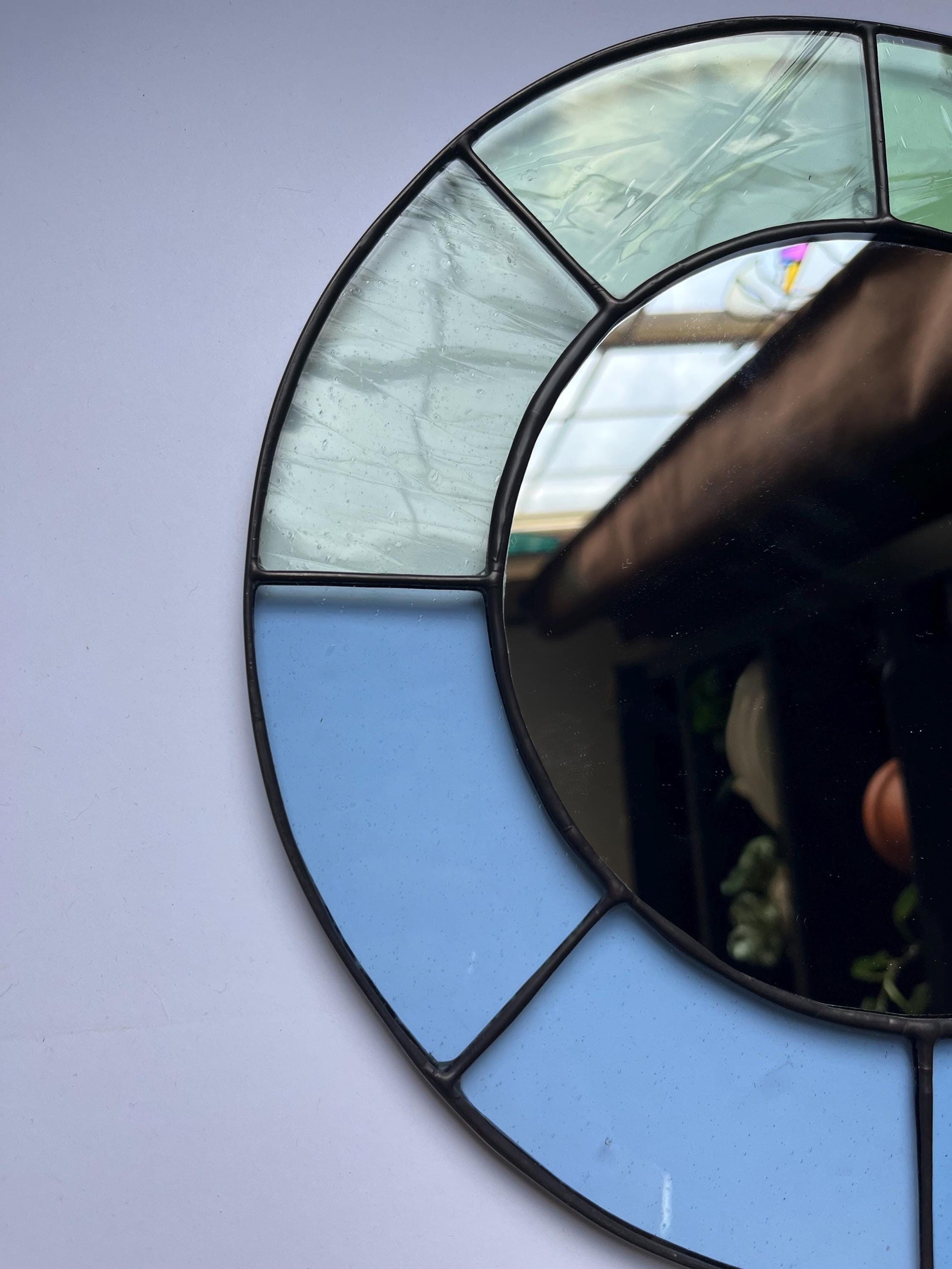 The Blue One- Stained glass mirror- pastel shades blue and green