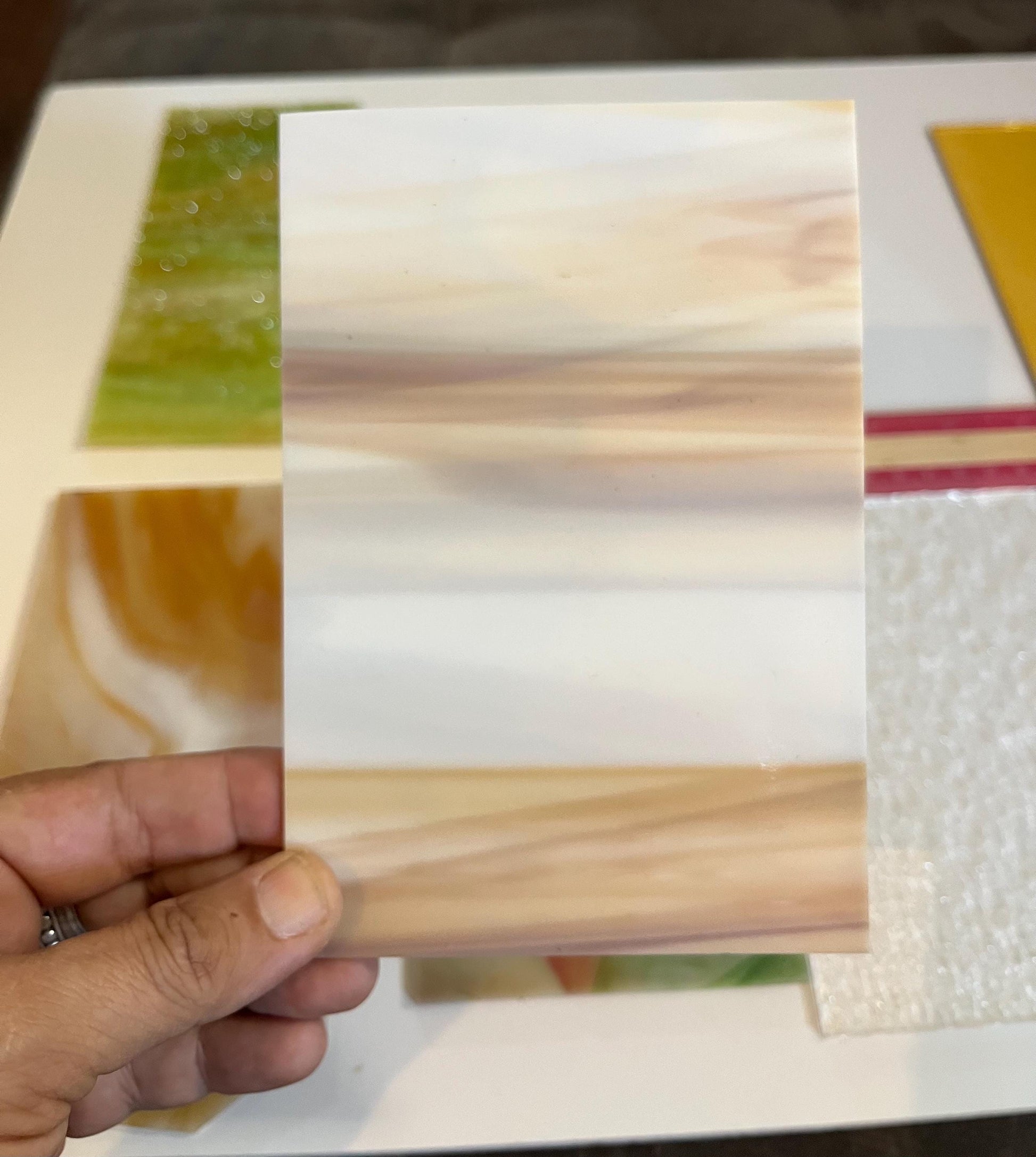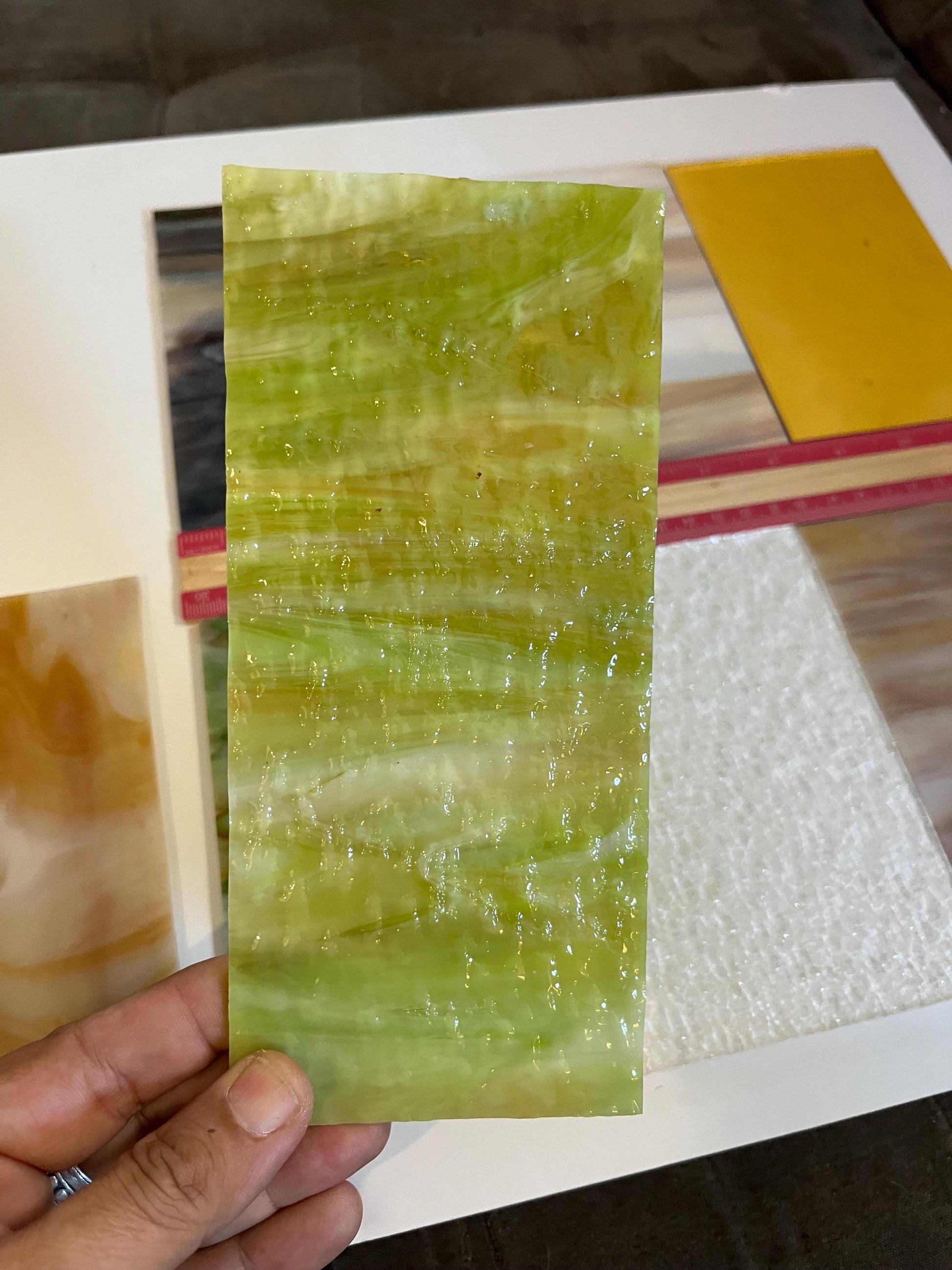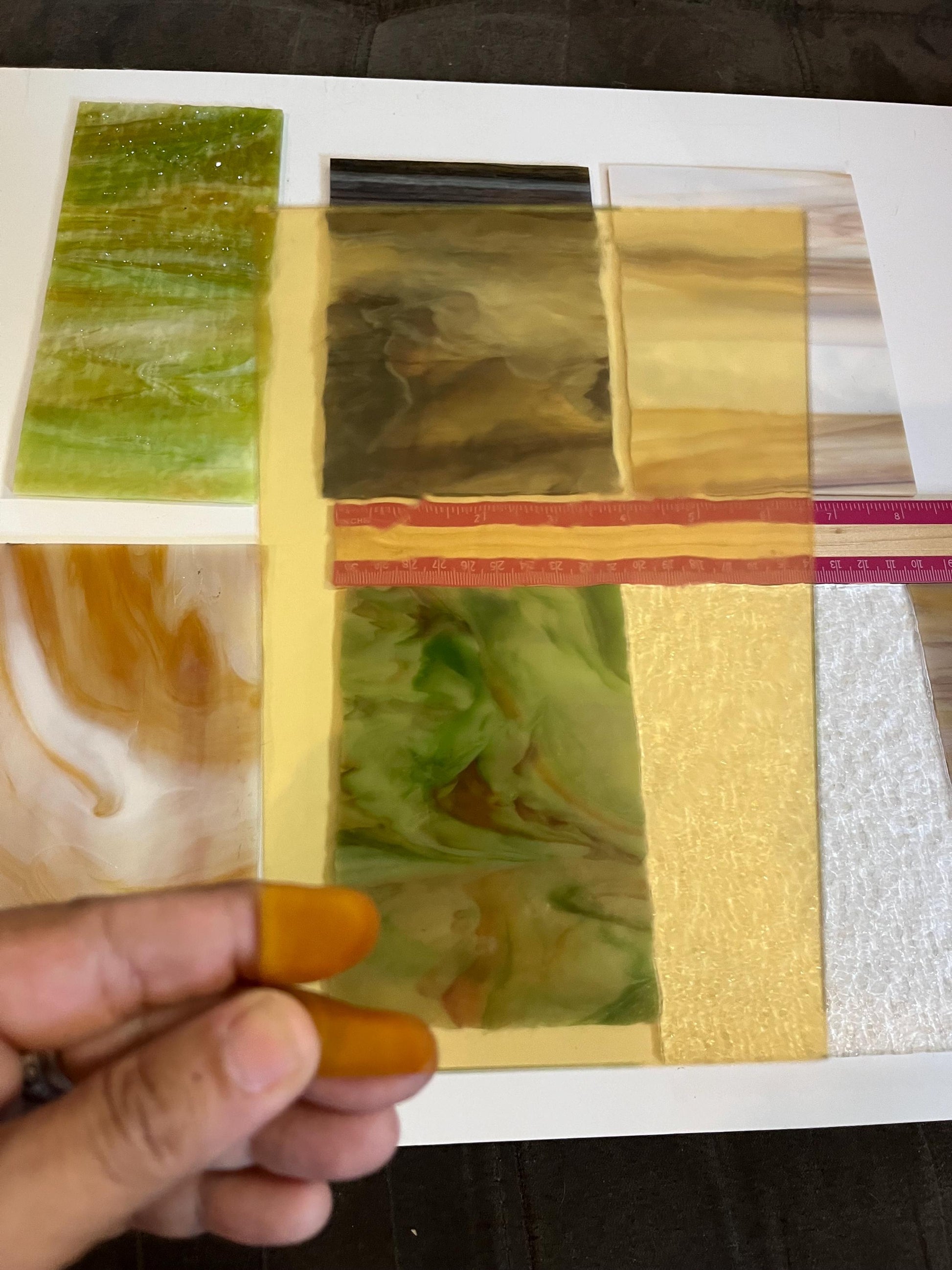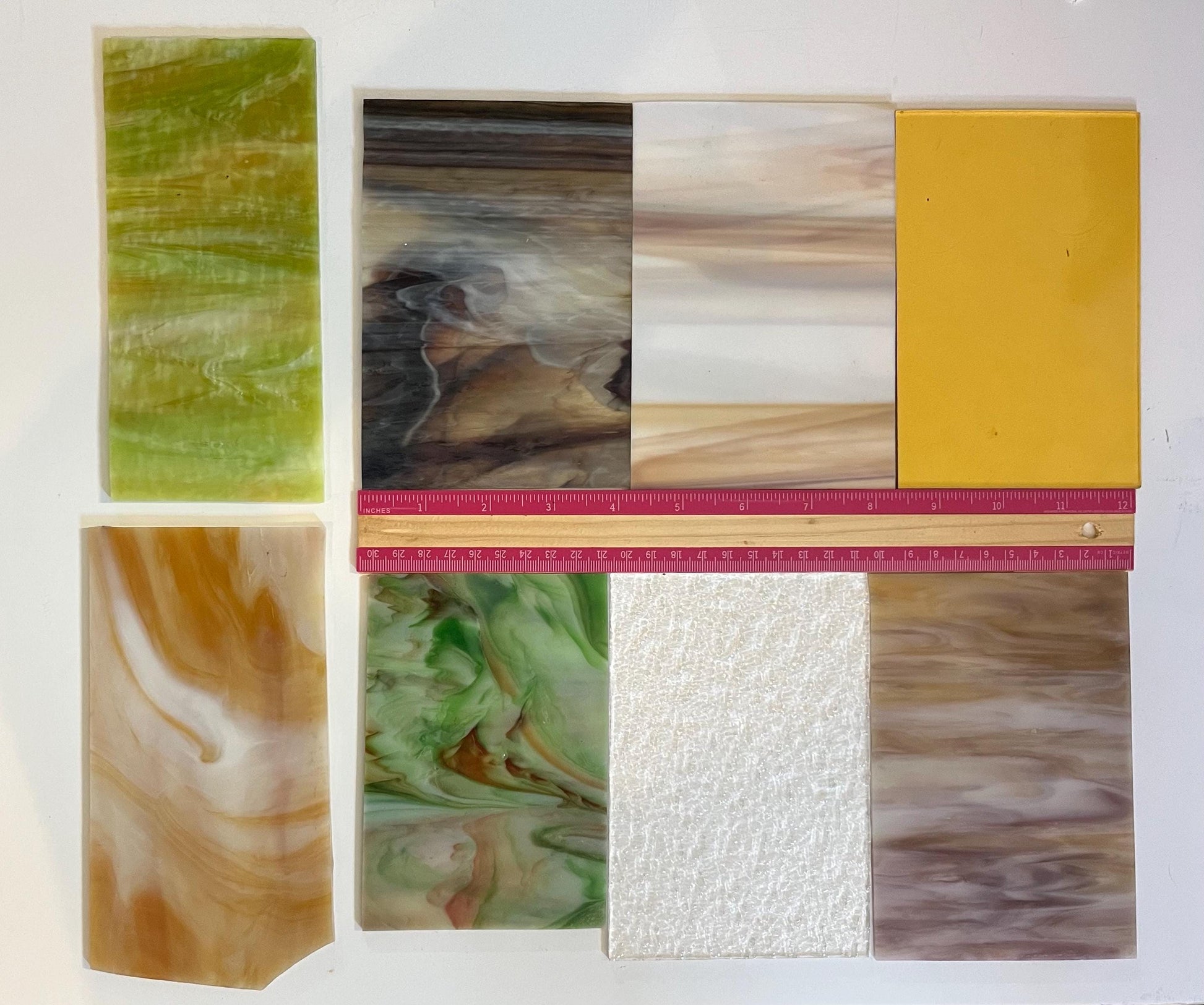 Very useful as a starter pack for beginner stained glass students and hobbyists who want to try lots of different shades and textures, without committing to a full sheet of glass!