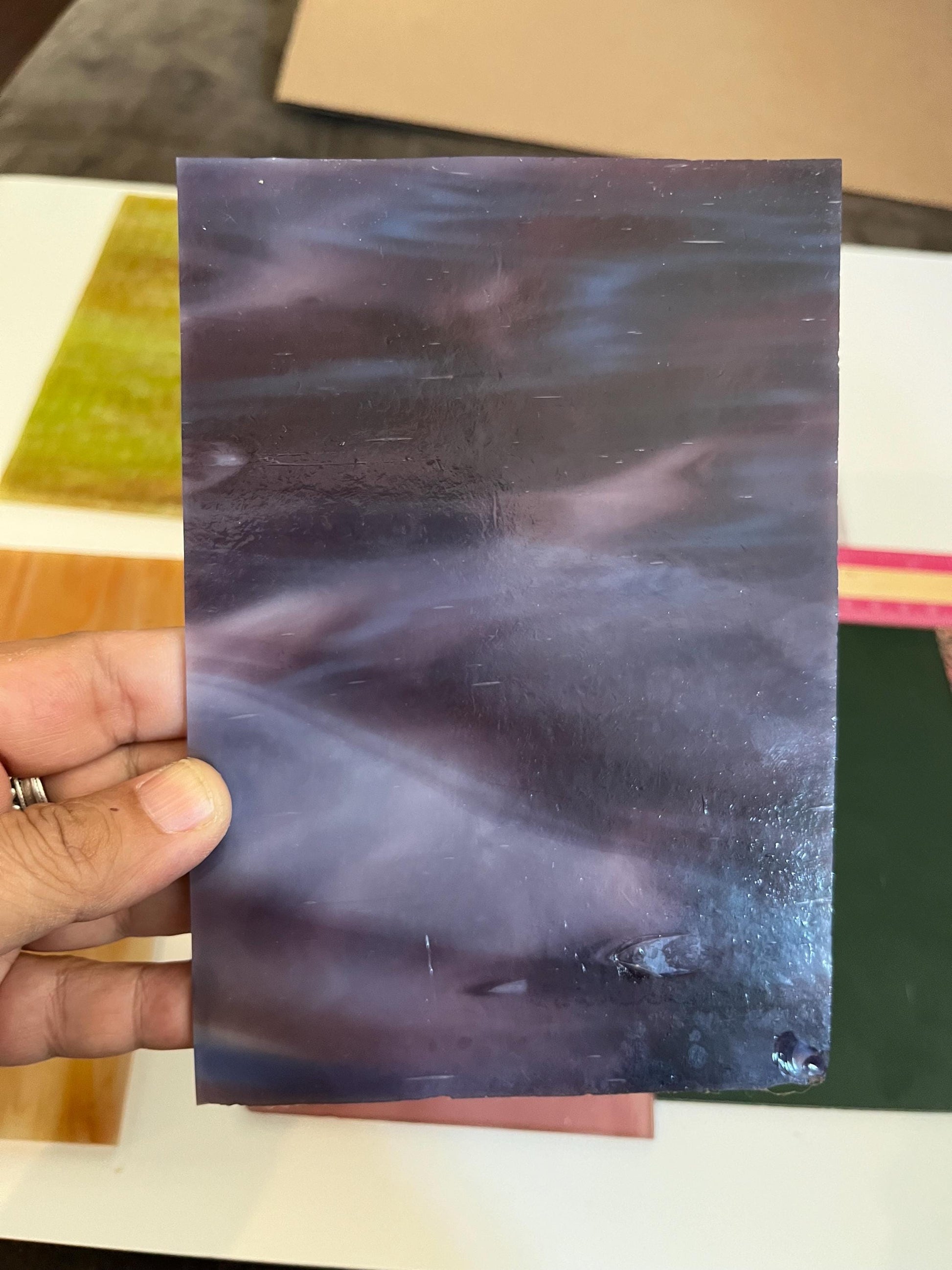 1- 4x6” purple and amber wispy Kokomo